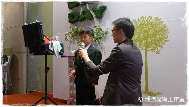 連續兩位小朋友後,我決定找一位漂亮的正妹上台來造福一下魔術師自己,但正所謂歹路不可行….雖然找了一位正妹,但她的侄子也馬上衝上台來….