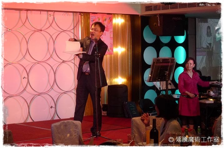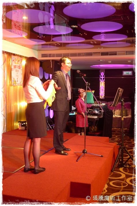 這次因為是迎新活動,所以我一樣設計是比較充滿互動的魔術,剛好這位會計師口才非常好,很適合表演互動式的魔術