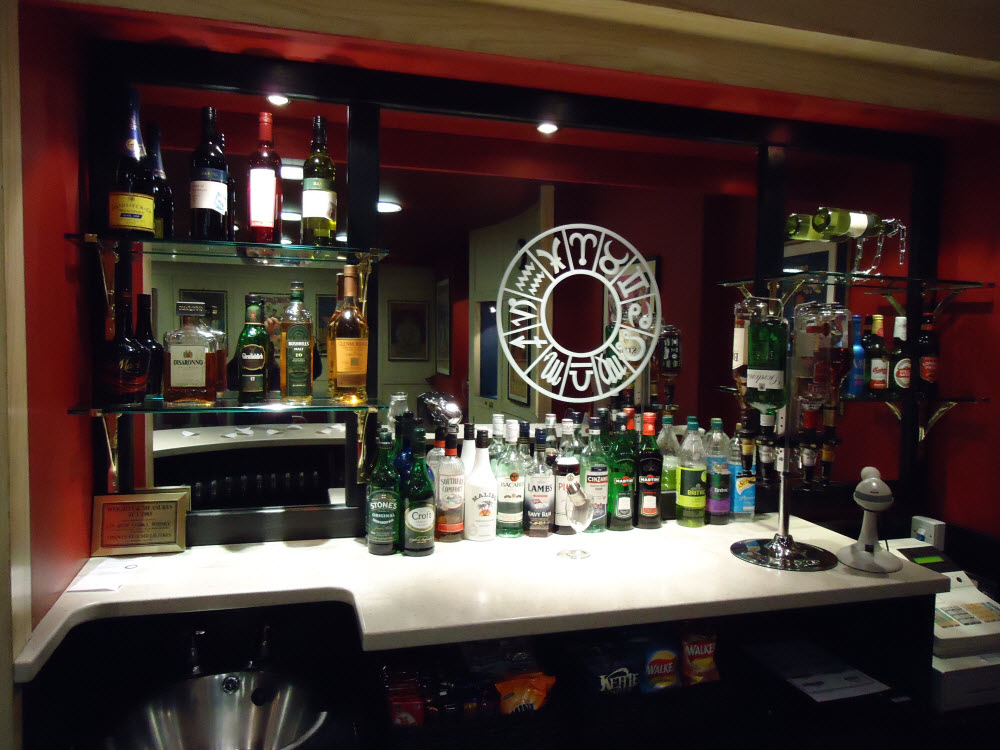 從大門進去後,左手邊就是這個樓梯,從右手邊的門進去,就會來到 The Magic Circle 的一樓交誼廳 Club Room ,而這邊也是每週一晚上的魔術師會員聚會的場所之一。在這個交誼廳,還有一個吧台,你可以點杯咖啡、啤酒喝~然後這邊的桌子,都是 The Magic Circle 的 logo 喔 (圖片點擊可放大,轉載於 The Magic Circle 官網)