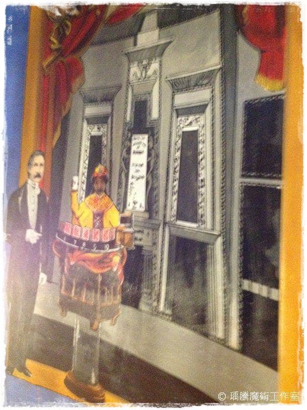離開一樓,延著剛剛的螺旋樓梯走,牆壁上有許多著名魔術師的肖像或是一些魔術表演的壁畫在牆上