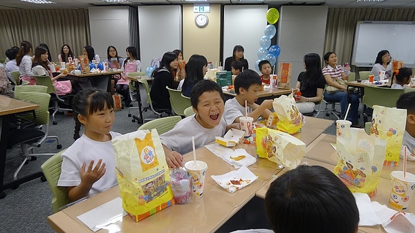 先看一下當天現場的照片,整個瑪陵國小(沒錯,整個)的學生都來了!(大家桌上都有麥當勞..真想吃)
