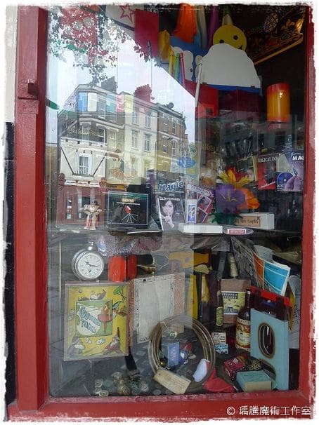 在店門口的櫥窗,可以看到很多魔術道具陳列