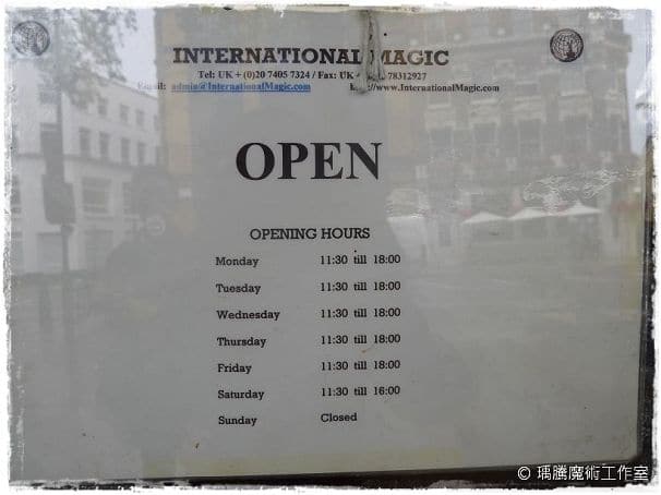 The International Magic 號稱是倫敦唯一一家道具店是在大馬路上,不在陰暗的巷子裡 XD ,大家如果對哈利波特熟悉的話,就知道他們賣魔法器具的店都在陰暗巷子裡,但他們不是,很正大光明的在大馬路上