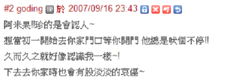 新訓回來本來開開心心的,不過聽到老妹跟我說你已經走了,整個心情都down下來,結訓和抽到海巡的喜悅一下子就通通不見了。不知道你覺不覺得呆在我們家開心嗎?會覺得自己常常呆在你的房間裡會很無聊嗎?我真的很難過你就這樣走了,多撐個幾天也好阿,至少讓我能看到你最後一面阿….