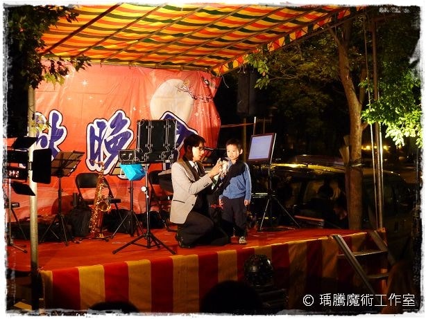 因為今天是社區的場合,所以在魔術表演上安排比較多互動的魔術,也找了很多可愛的小朋友上台。(一個專業的魔術師,是會依照表演現場的狀態來安排魔術表演內容)