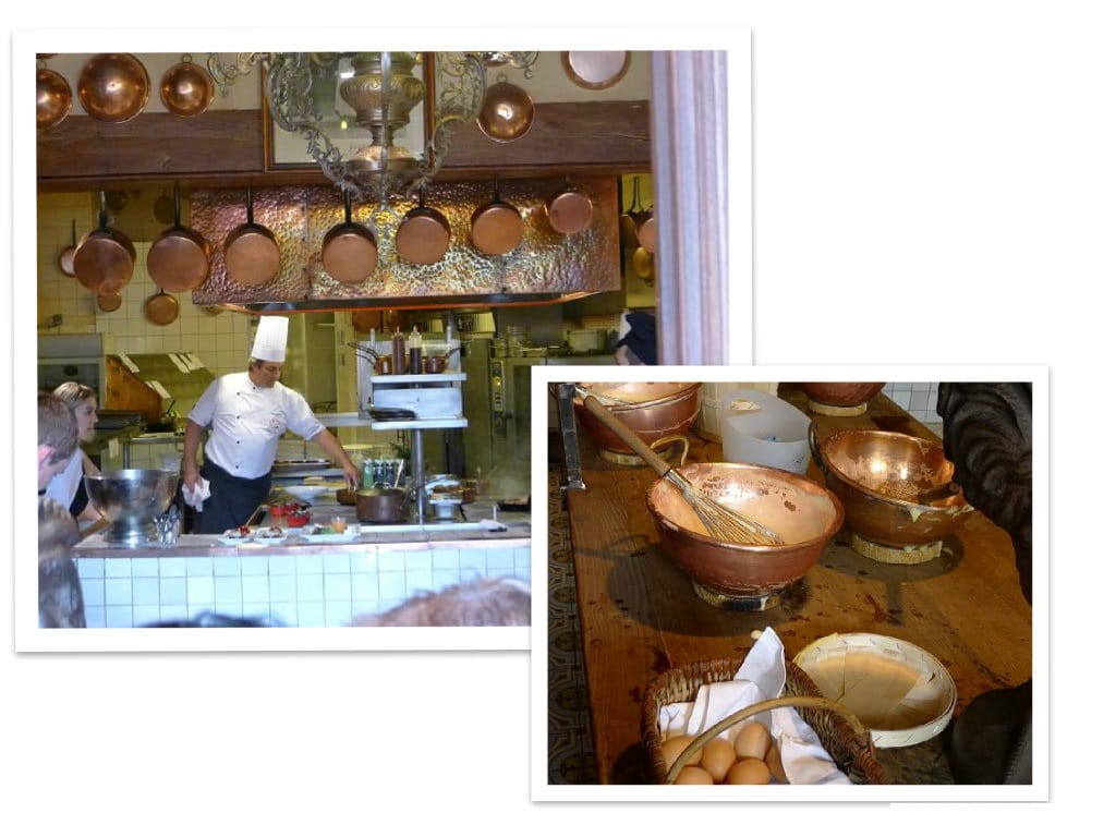 在店門口的廚房上方,還掛著一個公雞,公雞好像是法國的某個象徵,從門口就可以看到廚師們正在烹調料理,還可以看到打蛋的工具