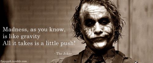 我相信依照劉謙的實力,絕對可以選擇其他魔術,但可惜我們都不是劉謙,所以無法得知他的想法是什麼,有可能如我上面所說,當然也可能是偷懶。但不管如何,當我們看完這次的表演後,或許可以先思考一下不用隨著媒體起舞。畢竟現在台灣的媒體就如同上面這張圖小丑說的,Madness , as you know , is like gravity . All it takes is a little push .