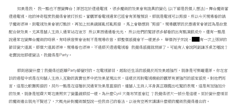在2007年我在我的舊部落格曾經寫過一篇文章,是探討關於電視魔術的,分享給大家看看(圖片點擊可以放大)