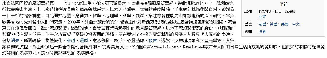 這位YIF到底是何方神聖呢?讓我們來看看維基百科他的介紹:
