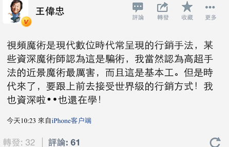 不過這段新聞提到偉忠哥自己也秀了段魔術,但這點卻讓我感到有點遺憾