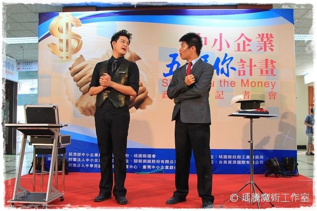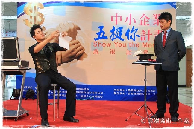 這次的魔術表演是受到桃園縣政府的邀約,為了宣導縣政府針對中小企業提出的企業補助方案而舉辦的記者會。桃園縣政府為了幫助有許多很棒的創意但缺乏資金的中小企業,特地提供了一系列的補助方案,讓我們缺乏資金的創業團隊可以無後顧之憂的盡情揮灑!而為了讓這次記者會讓人印象深刻,特別以魔術表演的形式來呈現~