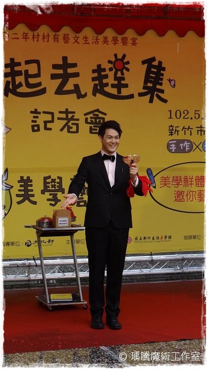 今天這場表演是在新竹生活美學館所主辦的創意市集活動「藝起去趕集」,在魔術表演中要把這次創意市集的焦點產品融合進去,把它們變出來!魔術本身就是集合各種創意之後的成品,所以這次的活動結合魔術,可以說是非常適當完美的~