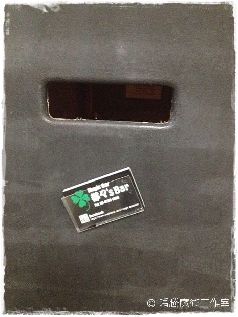 搭電梯上樓後,可以看到門口放著他們的名片。(電梯很小台,然後出電梯整個也是很小的走道,但請不用驚慌….因為日本的Bar真的很多都是這樣,不用覺得來到黑店 XD )