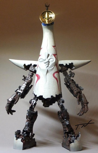 在去年,也有一位日本蠻有名的模型製作家把鋼彈和太陽之塔結合在一起,變成這樣 (其實還蠻酷的耶….有點想要 XD )