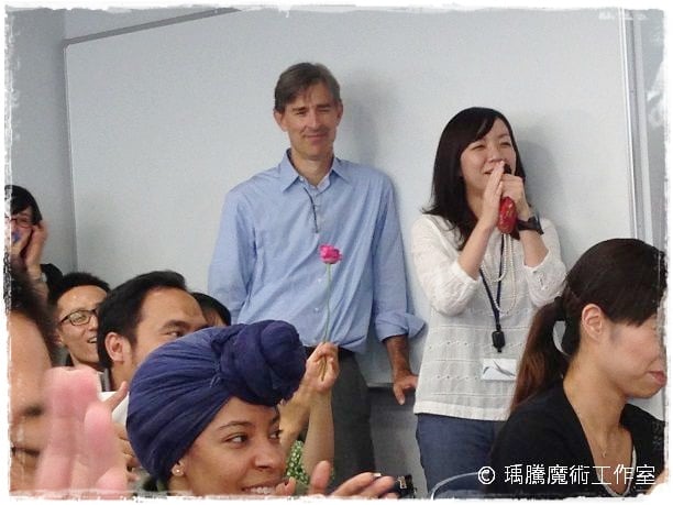 最後,變出來的玫瑰花送給現場的一位女觀眾(變魔術還可以順便進行國民外交 XD ),在全場觀眾的掌聲中,順利完成這次用日文演出的艱鉅任務。
