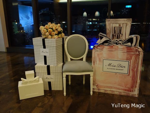 首先,我們先來看看在台北場 W Hotel 的現場布置。用著 Dior 的經典香水、禮盒和代言人娜塔莉波曼的大型背板,充分展現出 Dior 的質感。