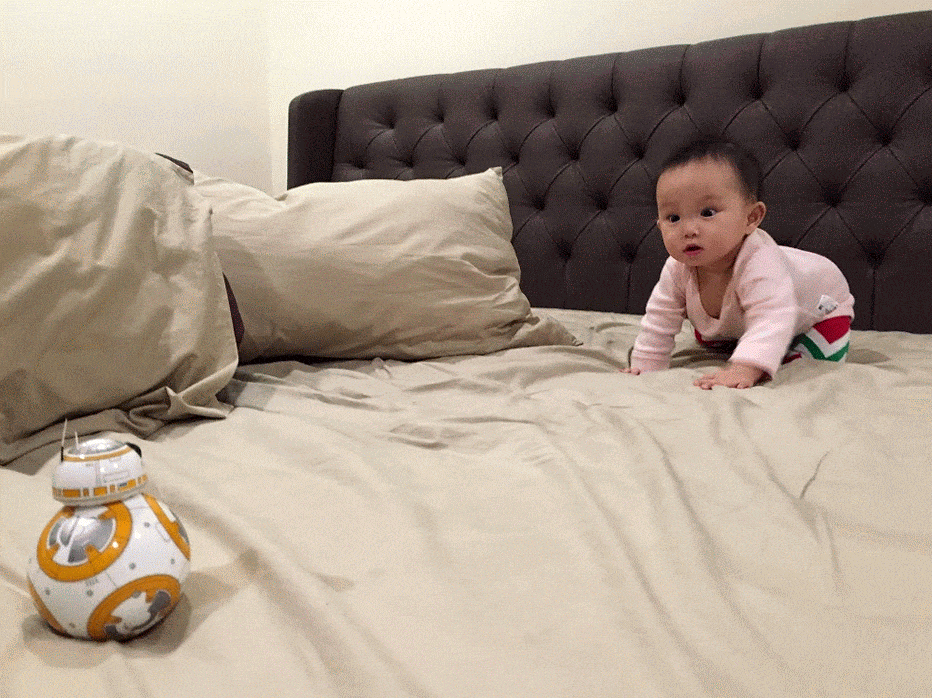 最後附上 2015 年最熱門的玩具和 2015 年最可愛的嬰兒第一次接觸的那一瞬間……….. 根本就是 BB-8 和進擊的巨人阿 囧,就這樣把 BB-8 給吃了….