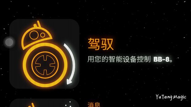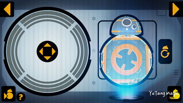 首先先來介紹一下駕馭的部分。駕馭我覺得是 BB-8 最有趣的地方,因為你可以自己操控她的所有行動,包括前進、後退甚至倒退嚕 XD 左邊很明顯可以看出是前進方向的操作,右邊則是方向的定位,也就是他面對的方向,透過球體的藍色閃光,可以確認前進的方向。