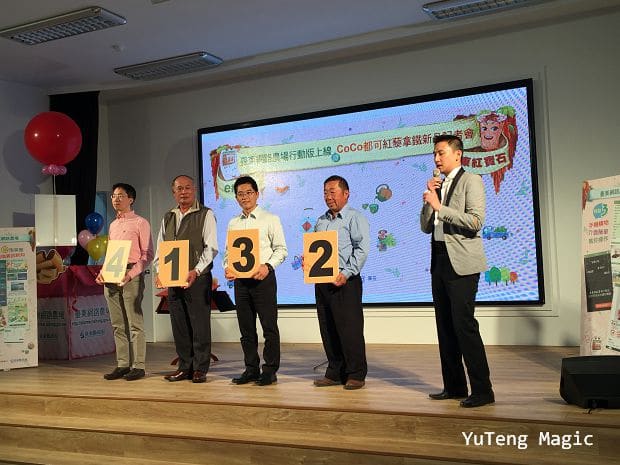 結果,意想不到的是在他們各自隨機的選擇下,打開信封袋拿出字卡後,剛好是紅藜拿鐵的排列順序 !台上的長官自己也嚇了一跳互相看對方的字卡,縣長更是笑得好開心 XD