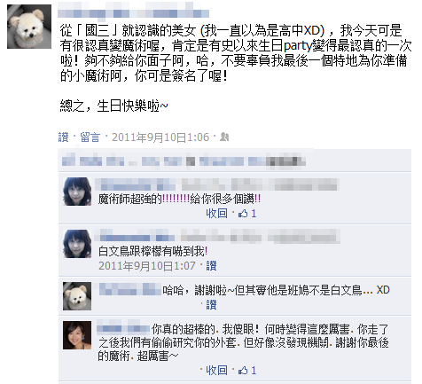 最後,來一下現場觀眾的反應,為了個資法的議題(魔術師還得懂法律~唉),所以把一些個人資料都馬賽克啦