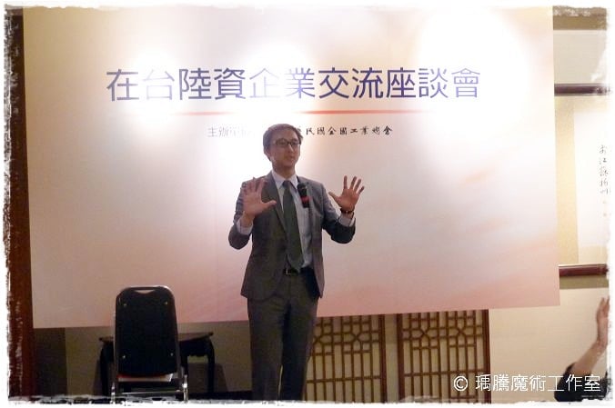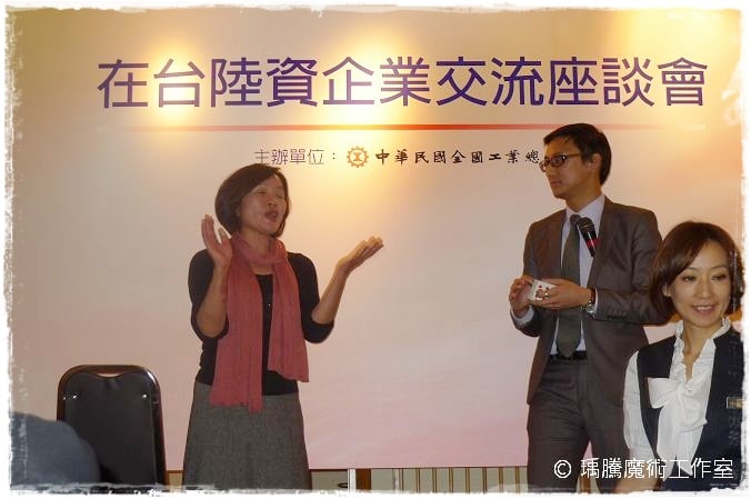 最後,邀請到在台陸資的會長上台當觀眾,我的姿勢好專業阿,但感覺比較像演講…還是像在選舉 @@
